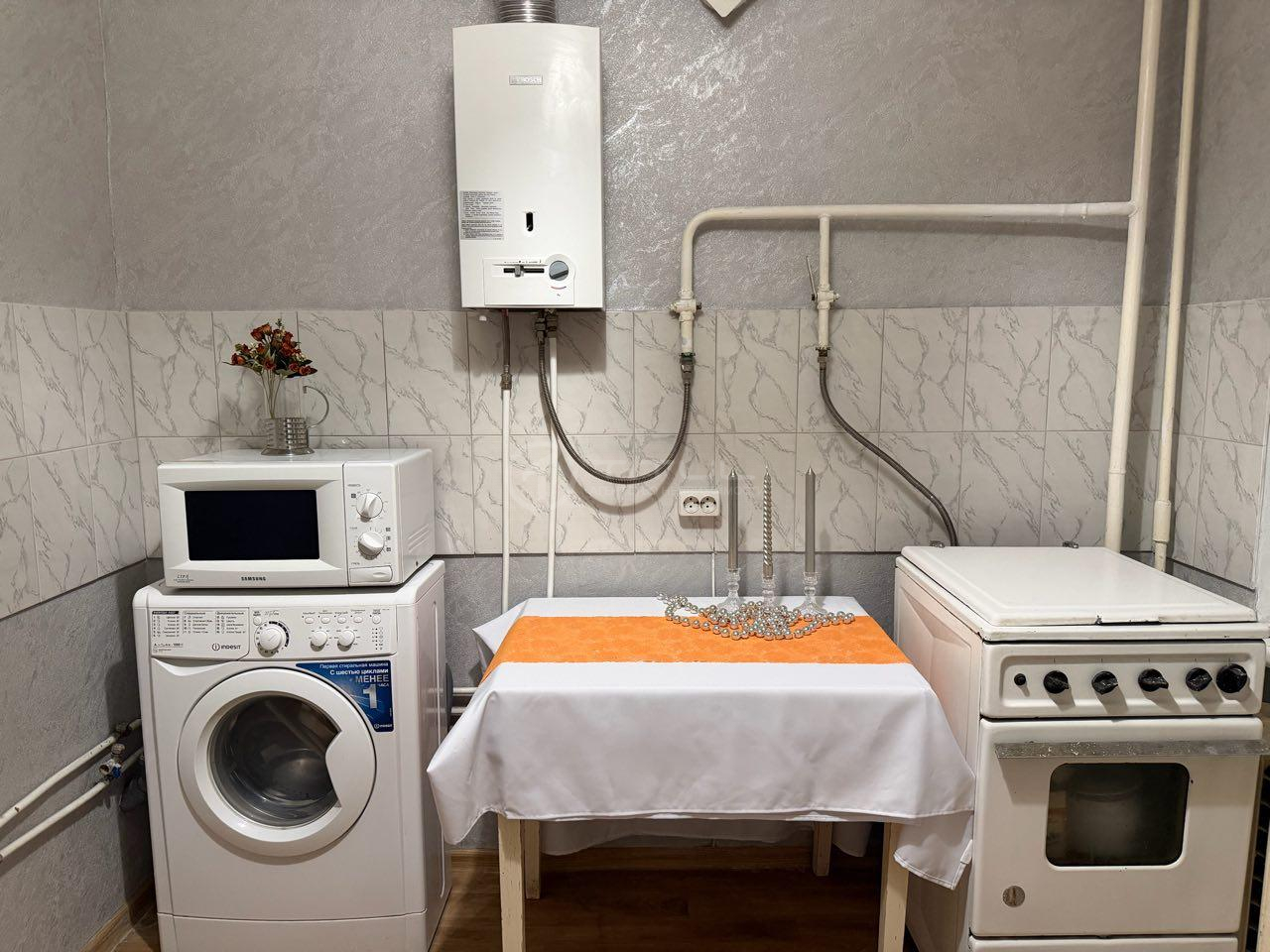 ✅ На кухне установлена новая колонка автомат бренда «Bosch», импортная техника: холодильник и стиральная машина марки «Indesit», микроволнавая печь «Samsung». В коридоре система хранения с антресолями.